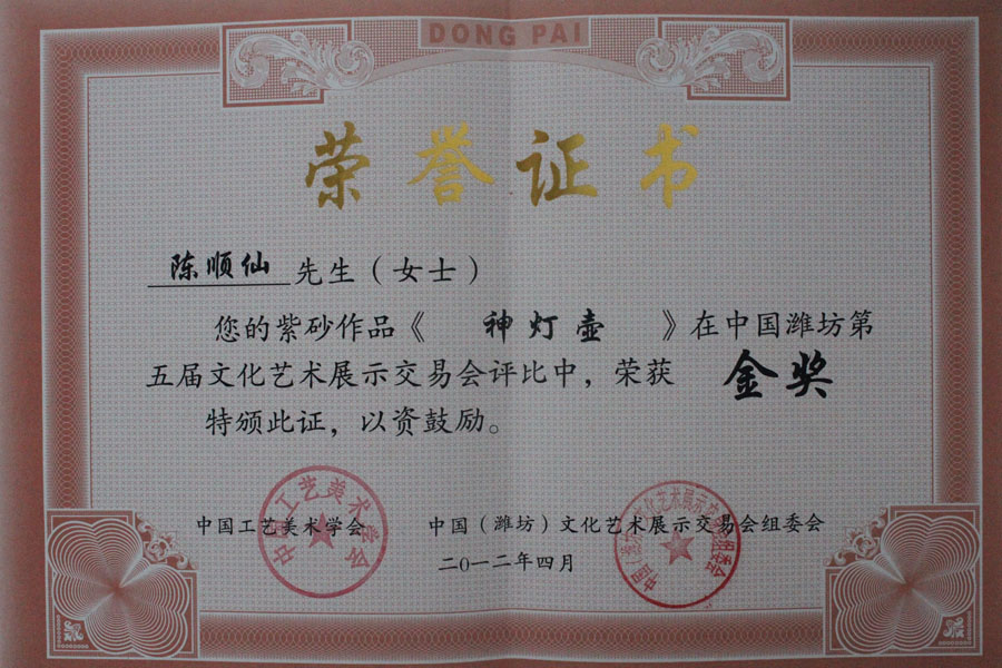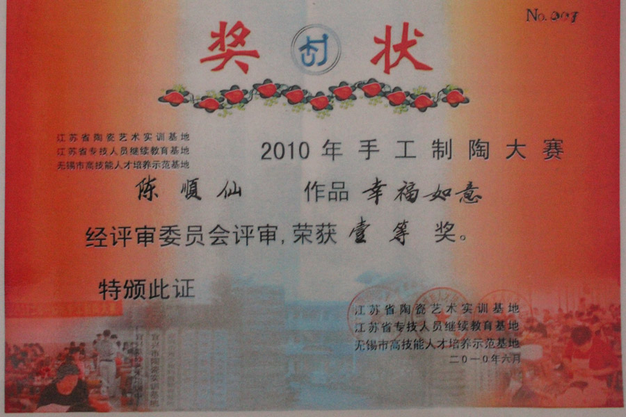 陈顺仙 ,1955年出生于著名的陶都宜兴,1972年进紫砂工艺厂师从中国陶瓷艺术大师何道洪、高级工艺美术师束凤英学习紫砂制作技艺,在三年徒工期间勤奋好学刻苦钻研,从而打下扎实的基础,徒工班满师后被分配到参观班制作高档产品,方器、圆器、花器、筋囊器等皆擅长。