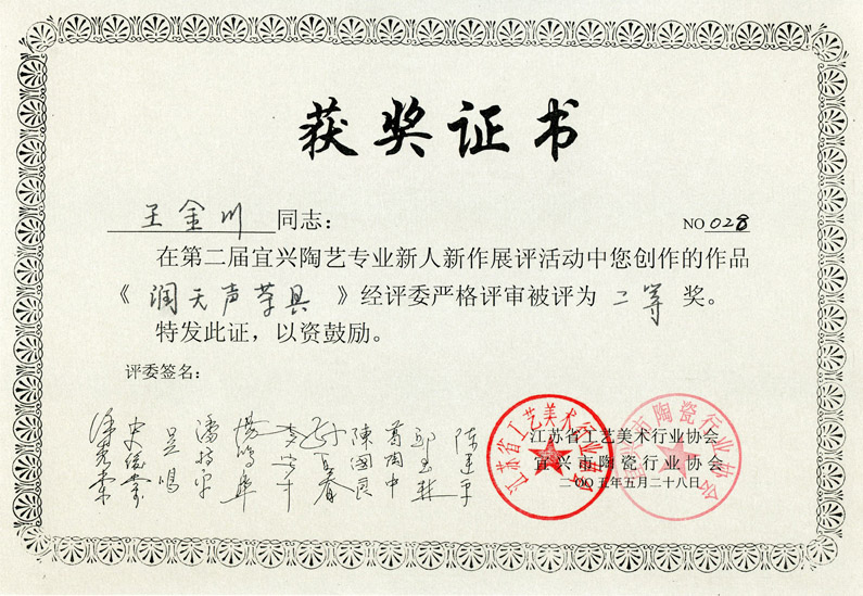 王金川,中国工艺美术大师吕尧臣之弟子,长龙山庄庄主。出生于江苏宜兴丁蜀镇,1982年走上紫砂陶艺之路,1986年创立金辰陶艺工作室,受到吕尧臣大师的悉心指导,在继承传统制作工艺的基础上,通过研究宜兴出土的拉坯古陶,大胆开发探索失传几百年的宜兴陶土拉坯工艺。