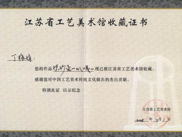 2008年,作品《叭嘎壶》被江苏省工艺美术馆永久收藏。