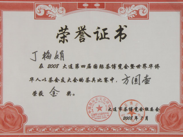 2008年,作品《方圆壶》获大连第四届国际茶博览会世界华侨华人以茶会友的茶具比 赛中获金奖。