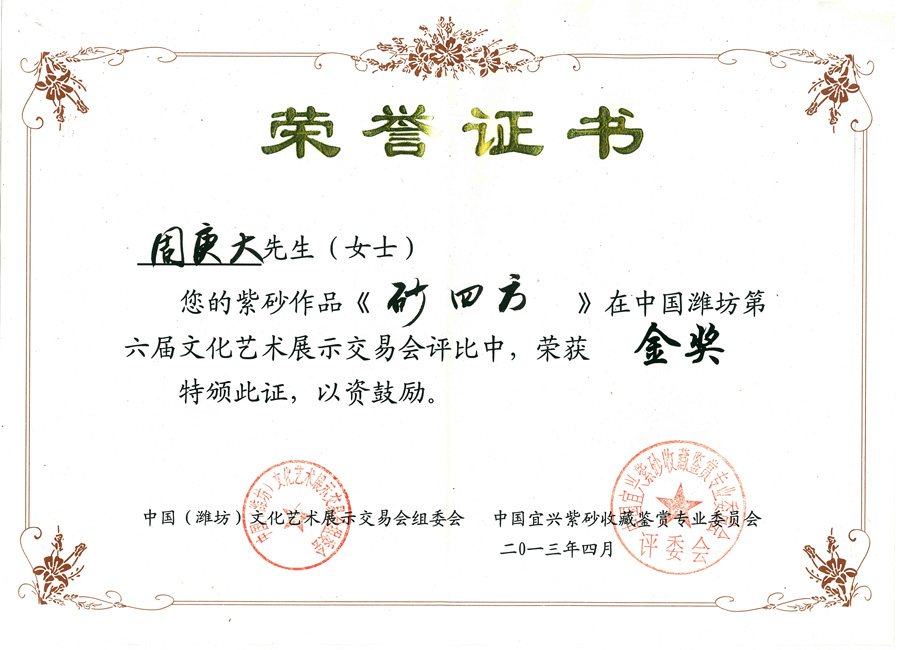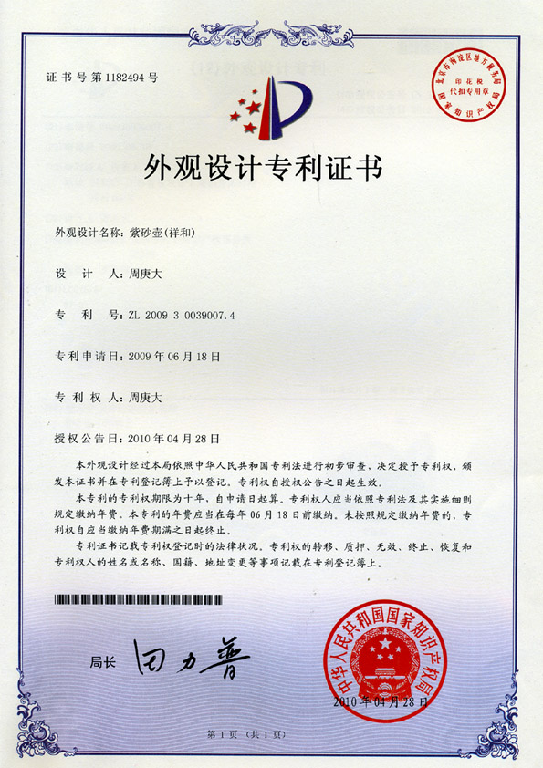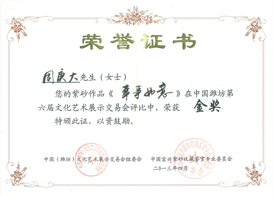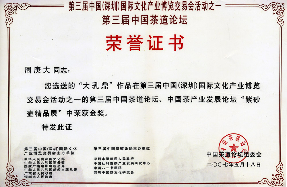 周庚大 国家级高级工艺美术师 中国工艺美术学会会员 中国宜兴紫砂收藏鉴赏专业委员