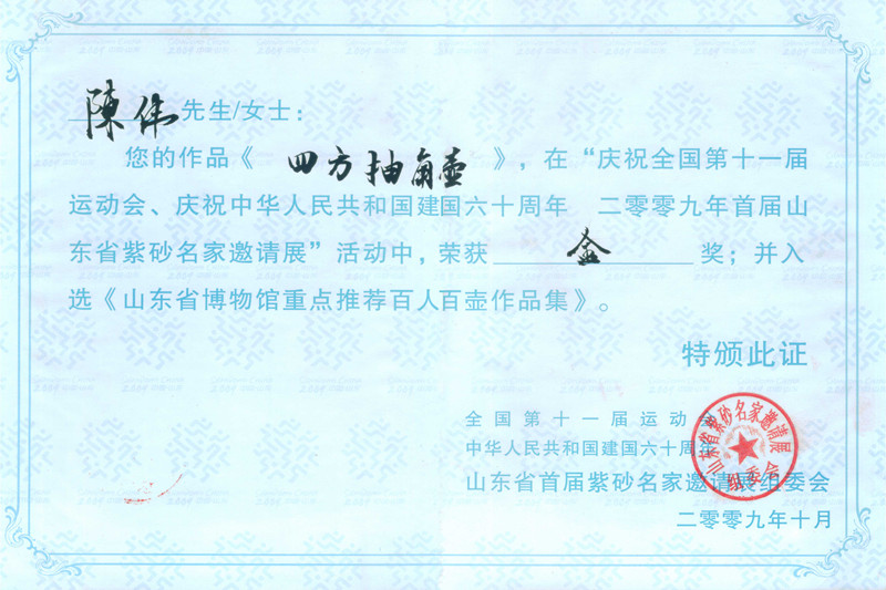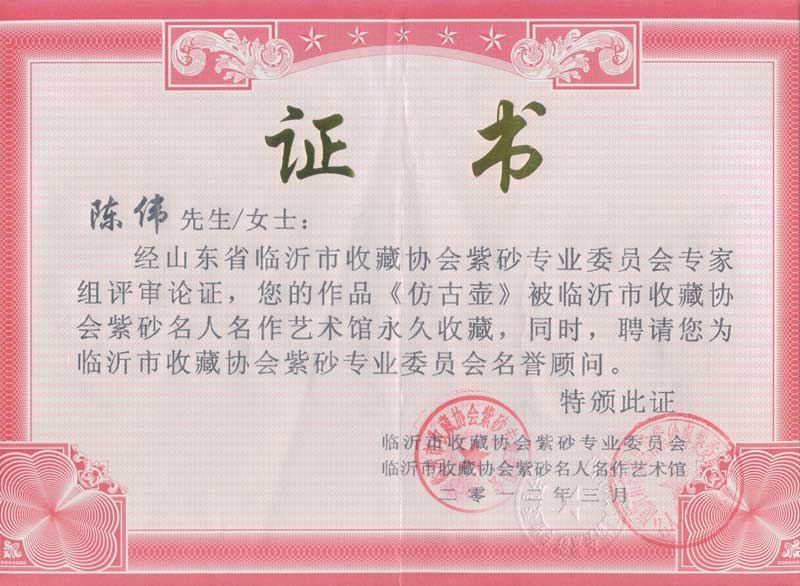 陈伟工艺美术师 青年陶艺家 中国工艺美术学会会员 中国宜兴紫砂收藏鉴赏专业委员会会员