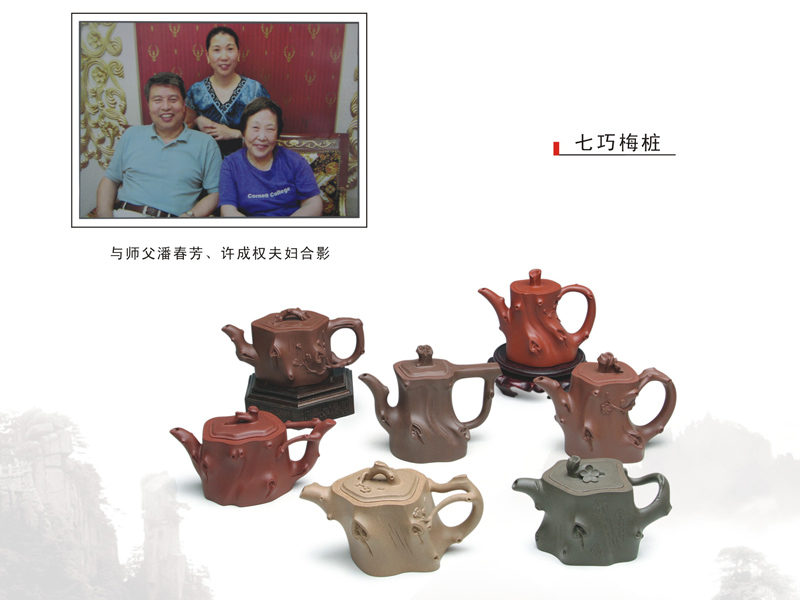 经过多年的刻苦训练,加之对历代名家作品的心揣手摩,同时也是在收藏家的殷切期望下,制壶技艺不断成熟,同时被提升为助理工艺师,工艺美术师。进厂几十年,精品佳作不断,造型优雅,构思独特,做工精美,深受国内外壶艺爱好者和收藏家们的喜爱。 |