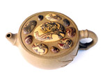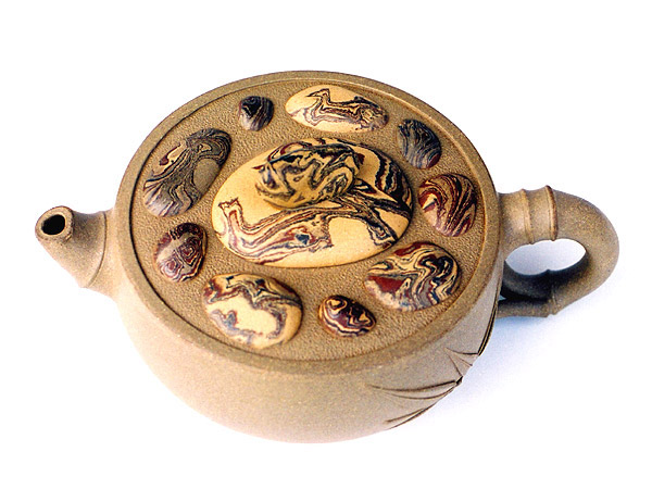 一九四0年出生于中国江苏宜兴。 一九五八年师从著名紫砂老艺人吴云根学习紫砂制壶技艺。 一九七0年服务于“宜兴紫砂研究所”,专事紫砂器的造型设计工作。此期间,新品层出:“竹炉茶具”、“竹圈酒具”、“玉带壶”等作品屡获全国陶瓷美术评比金奖、银奖。于是吕有了“创作大师”之誉。 七十年代后期,吕尧臣与其子吕俊杰发掘唐代长沙窑绞胎工艺,在紫砂上发扬光大,创成紫砂绞坭工艺(吕氏绞坭)使紫砂的形象更丰富多姿,千变万化,吕大师因此在海外又有了“壶艺魔术师”之称。 八十年代开始,吕尧臣及其子俊庆、俊杰,媳王黎明受聘于“中国宜兴陶瓷博物馆”,建立“吕尧臣陶艺工作室——醉陶居”,全部采用明清原始紫砂作法,制作紫砂陶艺作品获得成功,成为中国最知名的陶艺家之一。中央电视台、人民日报、新化日报、文汇报等新闻媒介屡有报道。 因其对中国陶艺的创造性贡献,一九九二年吕被载入英国剑桥《世界名人录》22版,并成为“世界名人协会”终生会员。 一九九五年被中国国务院命名为“中国工艺美术大师。” |