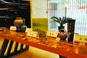 青瓷展台引人驻足
