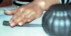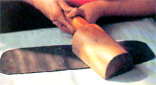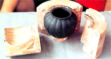 4.将打好身筒置于石膏模具中,并用工具挡规整。