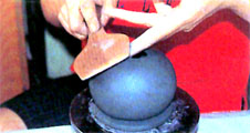 6.挡好壶身后,须口部满片,保持壶体中空及湿度,以防后期加工、清理时变形。