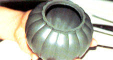 13.将制好壶纽用脂泥粘接上壶盖,并清理和整修,使每条筋纹规整如一。