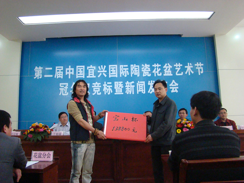 第二届中国宜兴国际陶瓷花盆艺术节冠名权被宝山工艺陶瓷厂有限公司以138800元得标,冠名“宝山杯”