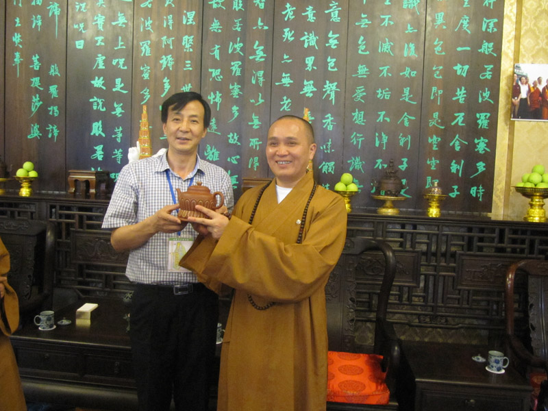 周汝平及夫人与中国佛教协会副主席释永寿合影留念