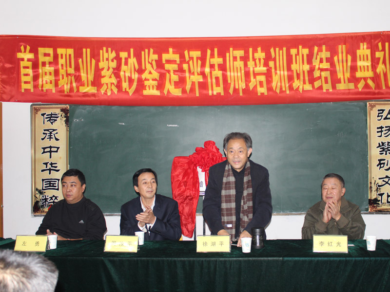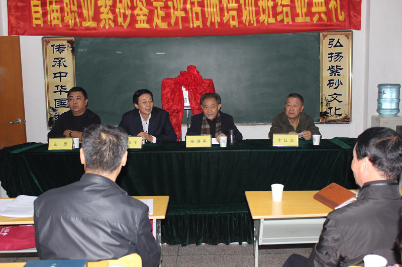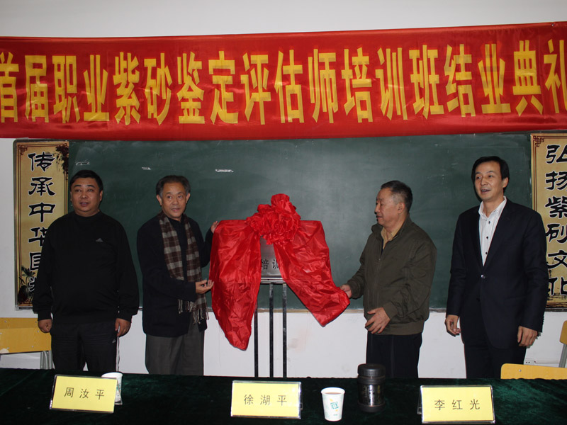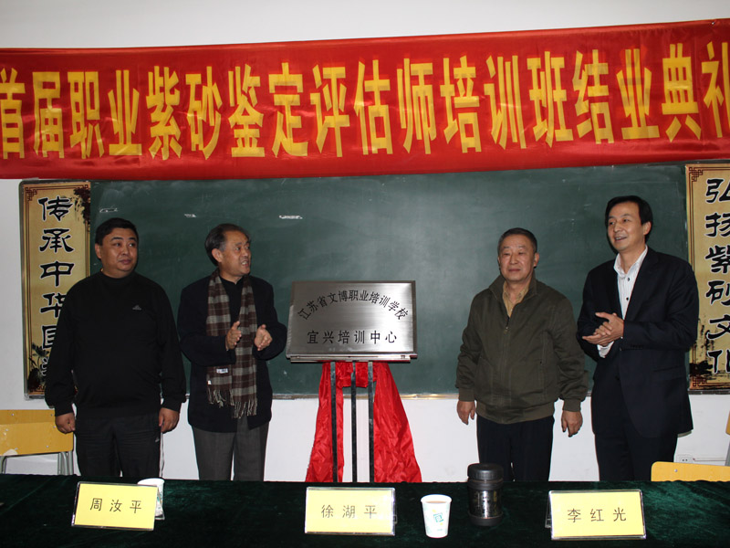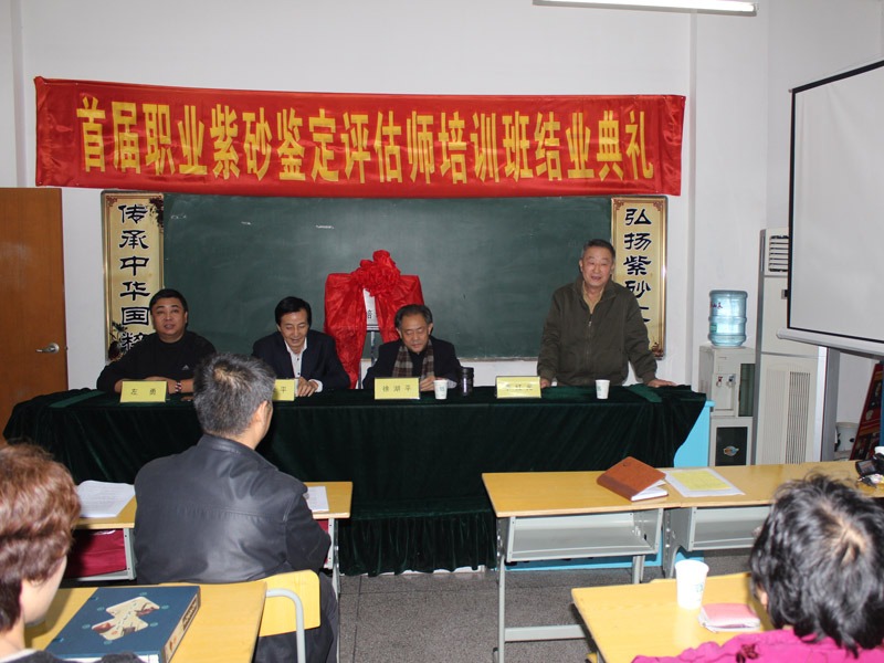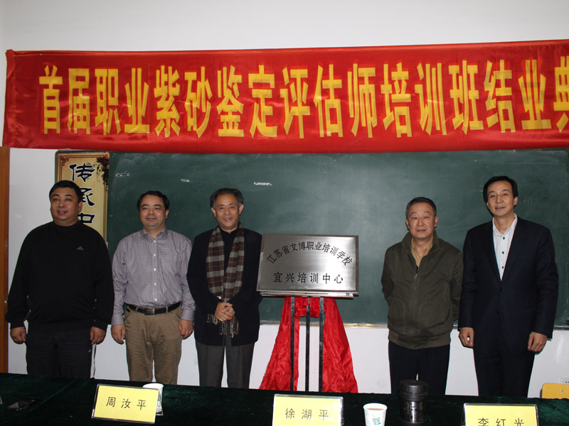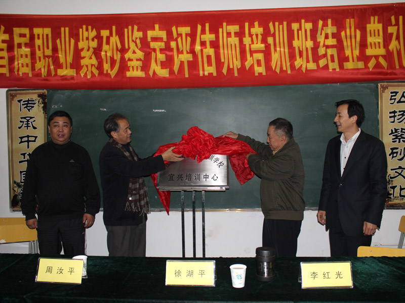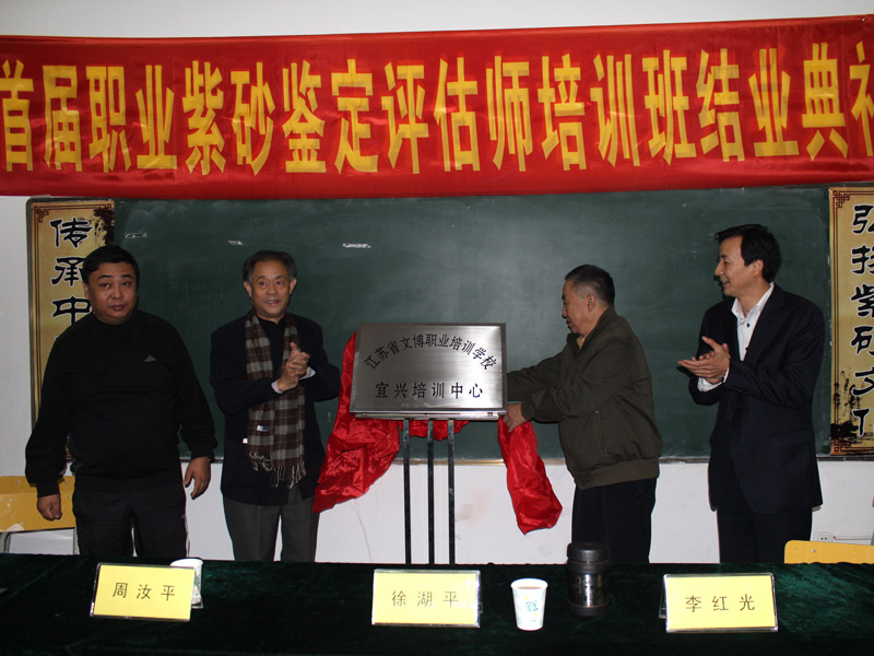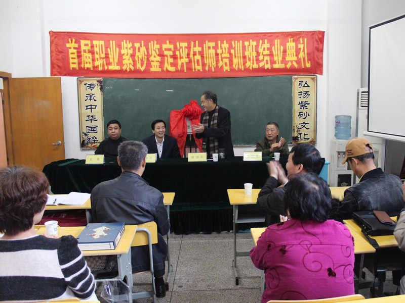 10月25日由国家人力资源部就业指导中心与北京清大文博国际艺术中心、江苏省收藏家协会联合举行的首届宜兴紫砂评估师培训班在宜兴丁蜀镇举行开业典礼。来自全国各地热爱紫砂的从业人员约40多人参加了本次培训活动。