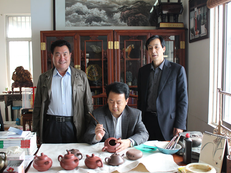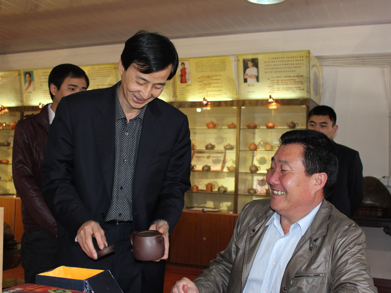 周会长为浮来山实业董事长卢宝春介绍紫砂壶