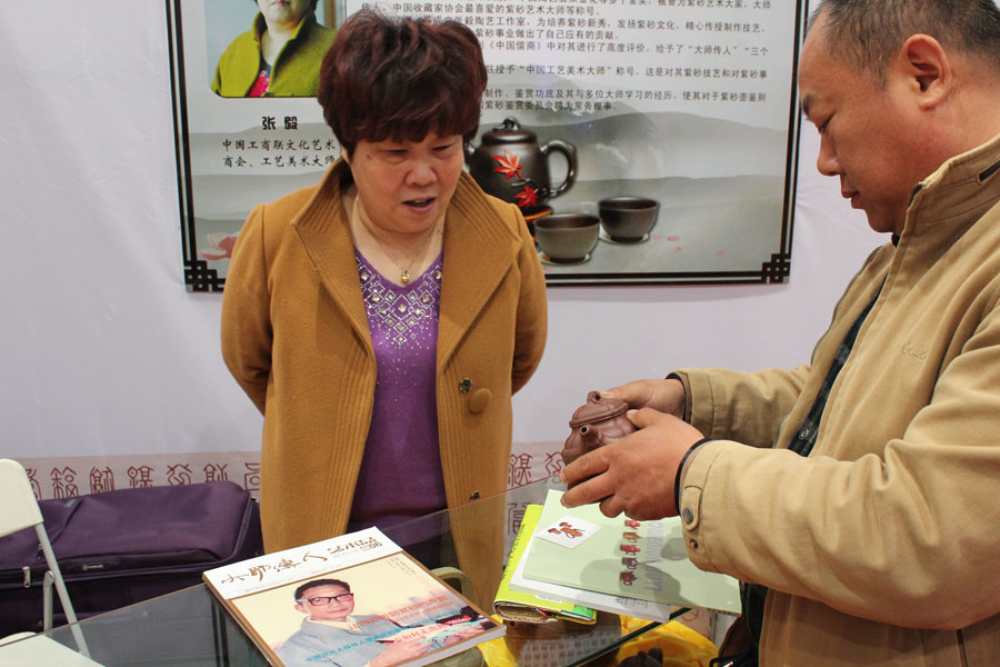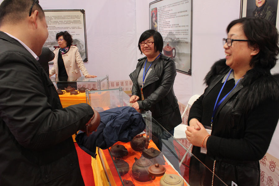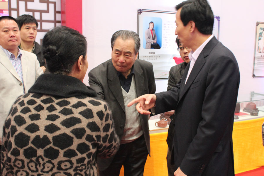 在这届文化艺术展示交易活动中,作为主办单位之一的中国宜兴紫砂收藏鉴赏专业委员会,由会长周汝平率领大师传人团队140多人参加了这次活动。并有中国工艺美术学会理事长,副会长李红光,中国工艺美术大师顾绍培,省工艺美术大师周尊严等出席了此次活动。
