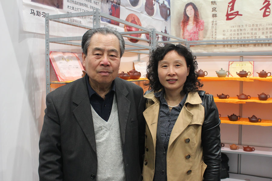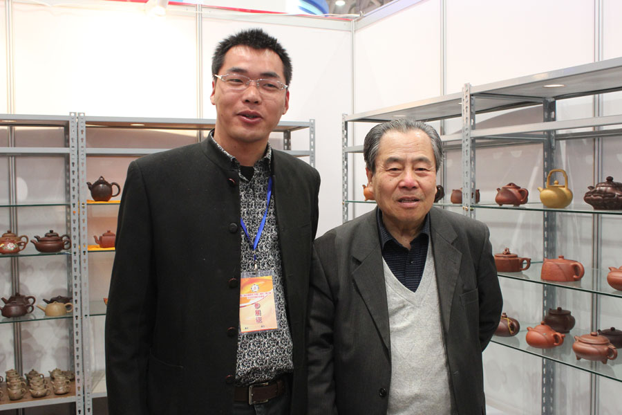 山东省茶文化协会秘书长何国英与中国工艺美术大师顾绍培相谈甚欢