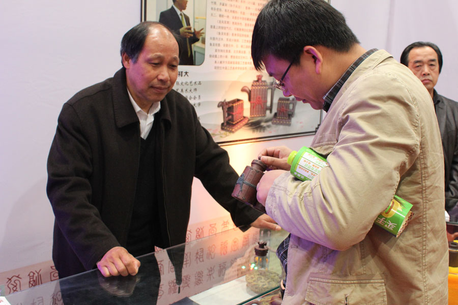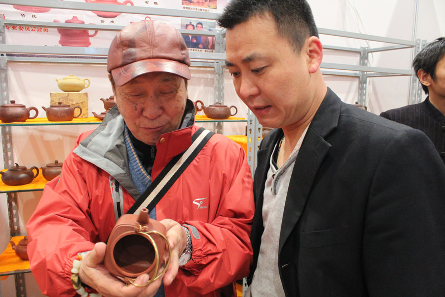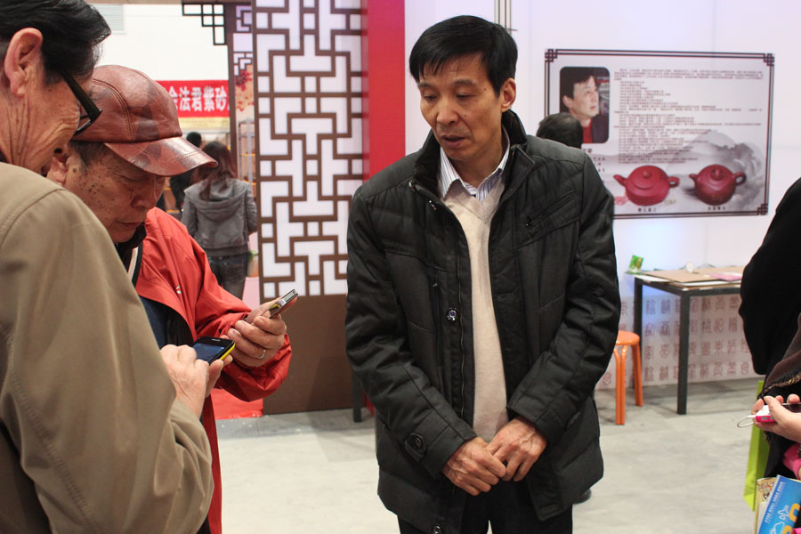 全国工商联中国工艺美术大师吴祥大在为紫砂爱好者介绍作品