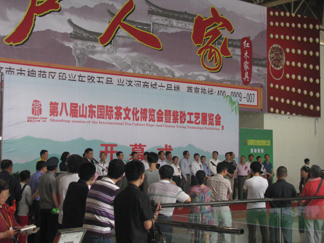 2013年5月23日—5月26日第八届山东国际茶文化博览会暨紫砂工艺展览会在济南舜耕国际展览中心隆重开幕,并取得圆满成功。我协会率一行20多人参加了此会,这次被邀出席大会的有中国工艺美术大师李昌鸿,江苏省工艺美术大师、省陶瓷艺术大师周尊严,原江苏宜兴陶瓷博物馆馆长时顺华。参加开幕式的还有山东省宣传部,山东省茶协有关领导等。