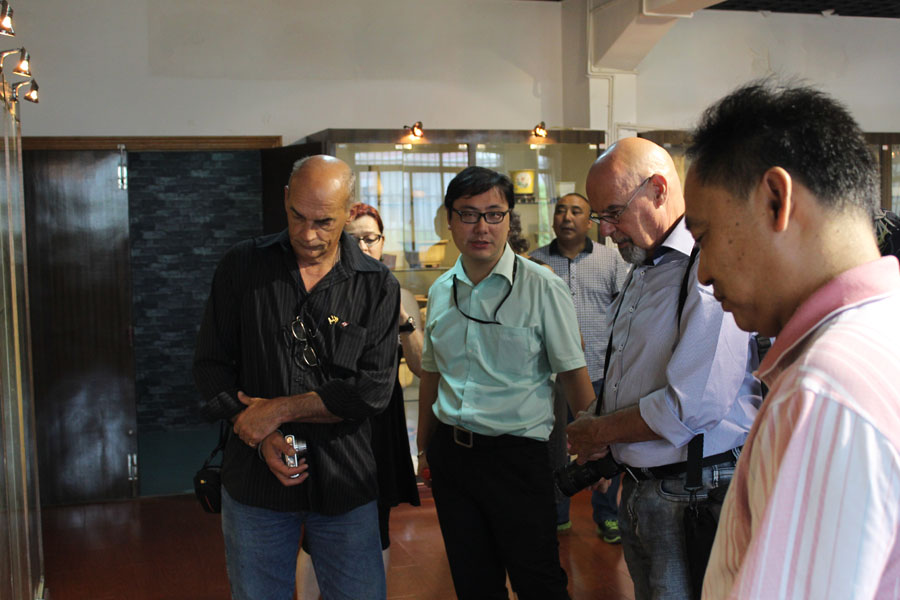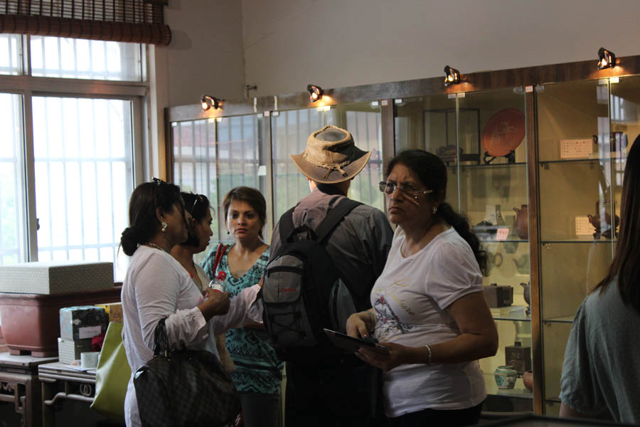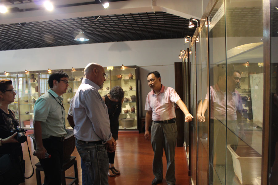 国家级高级工艺师楚砺明为外宾介绍紫砂艺术