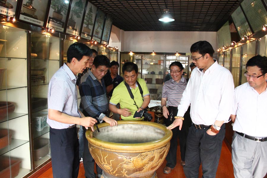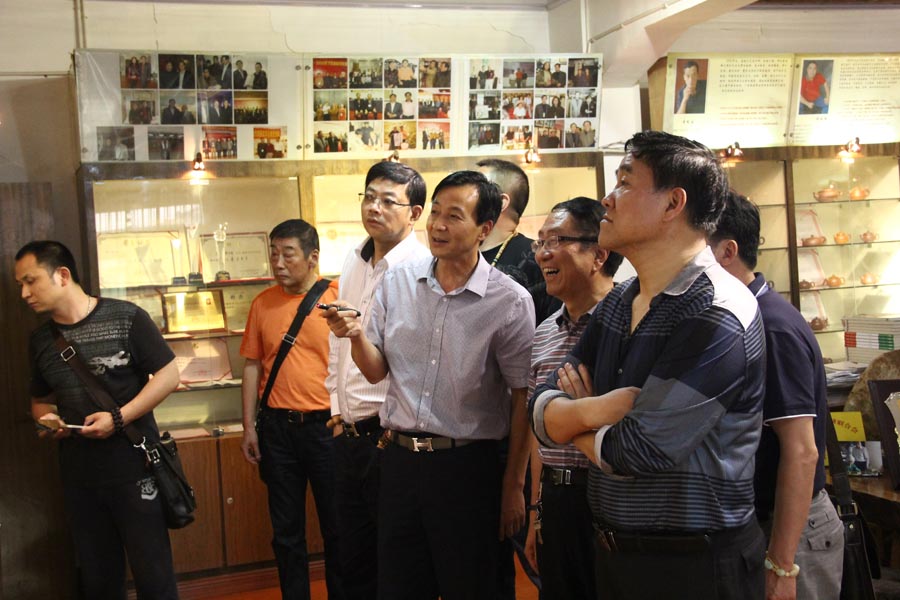 中国紫砂文化研究会会长周汝平带领来宾参观