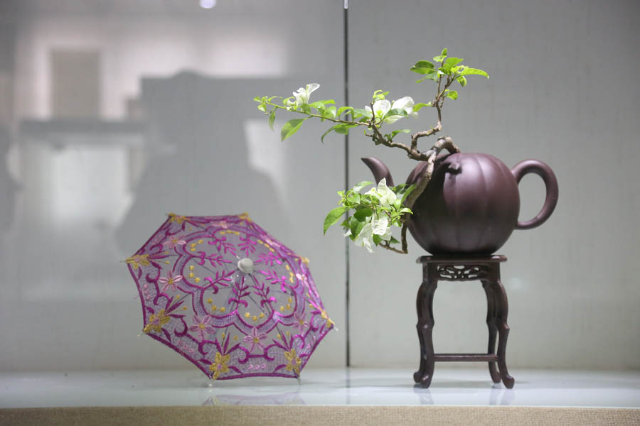 在此次国际盆艺节上,还举办了“第九届全国陶瓷花盆创新评比”与“中国盆景艺术大师林鸿鑫紫砂壶盆艺精品展”,展出了多件精美的盆景作品,令人目不暇接。