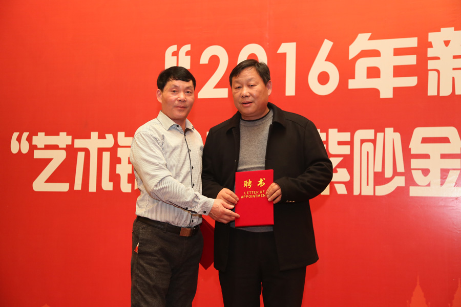 在此次晚会上,同时也向刘湘根、徐南江等人颁发了全联民间文物艺术品商会紫砂文化研究会的聘书,向周海荣、金志敏等人颁发了中国宜兴紫砂收藏鉴赏专业委员会的聘书。