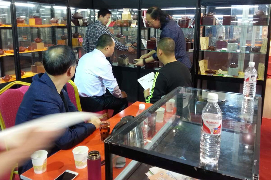 由中国传统工艺大师张燕平和客户交流介绍紫砂作品