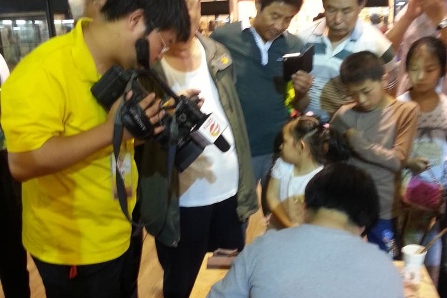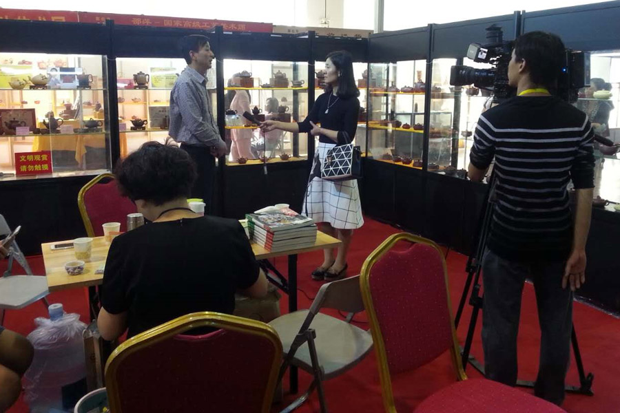 青州电视台在现场采访中国紫砂文化研究会会长周汝平