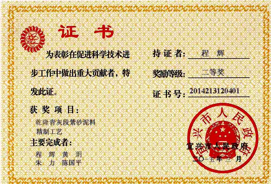 国家标准《紫砂陶器》(GB/T 10816 1989) 起草人 《宜兴紫砂泥料标准》制定专家组 组长